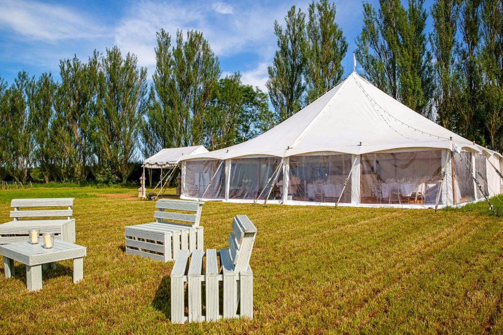 Before you fall in love with a tent style or seating plan, take a good look at the space where you’ll be setting up.